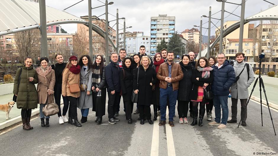 Përveç Prishtinës, patëm mundësinë të vizitojmë edhe Mitrovicën e Jugut, të cilën nga pjesa veriore e ndan ura e famshme mbi lumin Ibër. U takuam me nënkryetarin e bashkisë së Mitrovicës së Jugut dhe biseduam me të – theksi i bisedës ishte e kaluara. Më pas u ndamë në disa grupe (studentët pjesëmarrës të projektit janë ndarë në disa grupe dhe kanë bërë intervista apo reportazhe të përbashkëta – shënim i Redaksisë) dhe bëmë ca intervista, aplikuam ato që mësuam për raportimin gazetaresk me telefona celularë.