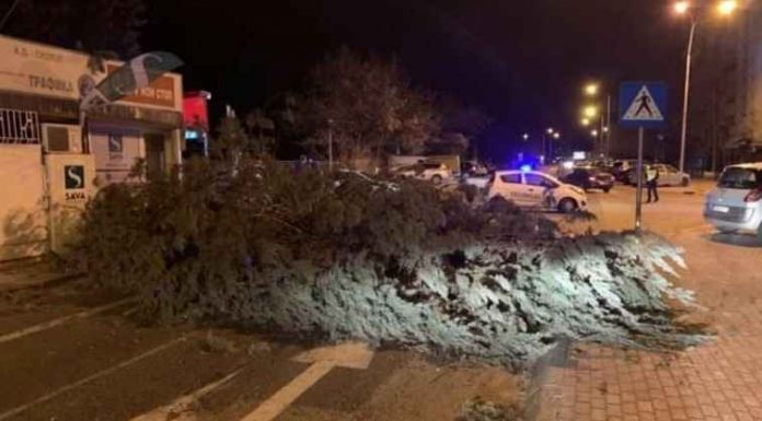 Në Shkup sonte fryn një erë e fuqishme me rreth 70 kilometra në orë. Në pjesë të qytetit, ka edhe çati dhe drunj të shkulur që pengojnë komunikacionin.