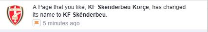 Por duket se fakti që tashmë nuk është më vetëm një ekip i Korçës, por edhe i gjithë shqiptarëve, ka bërë që Skënderbeu të ndryshojë emrin…të paktën në Facebook.