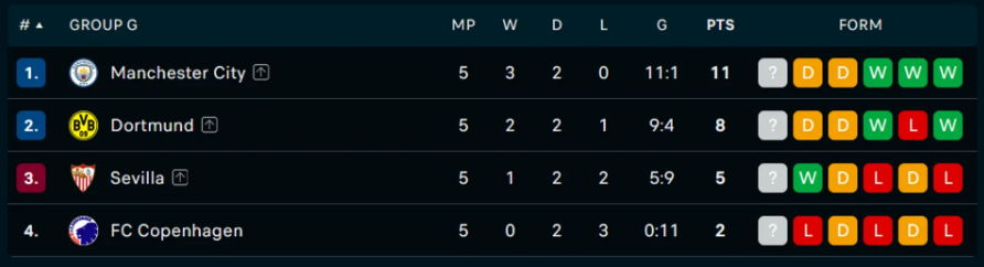 Sevilla gjithashtu u eliminua nga kompeticioni pas një fillimi shumë të dobët në të cilin humbi dy herë dhe barazoi po aq herë. Më e mira për të cilën mund të shpresojnë është një vend në Europa League.