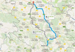 Google Map. Matje e distancës nga kufiri në Merdare deri në Beograd