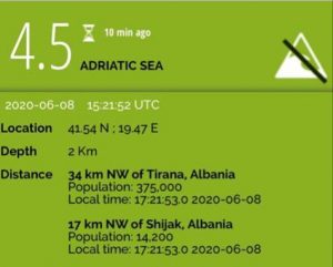 EMSC bën me dije se epiqendra e këtij tërmeti ka qenë afër Durrësit. Ndërkohë shkalla e këtij tërmeti ka qenë 4.5 rihter.