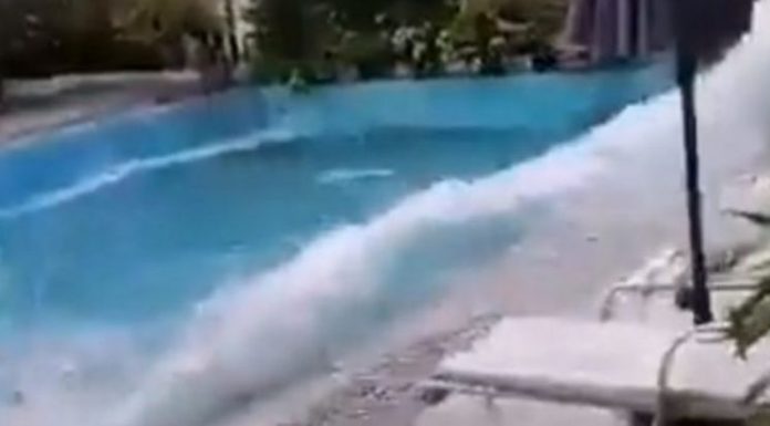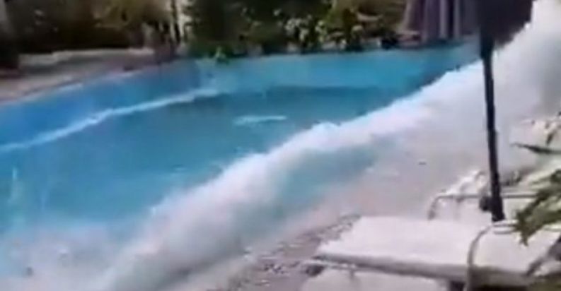 Në rrjetet sociale banorët e zonës kanë postuar foto dhe video, ku bie në sy videoja e një pishine e cila nga fuqia e tërmetit krijon dallgë, duke nxjerrë ujin jashtë.