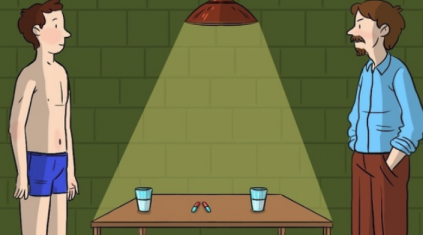 Një vrasës serik i rrëmbeu njerëzit dhe i bëri ata të merrnin një nga dy pilula, njëra ishte e padëmshme dhe tjetra ishte helmuese. Cilëndo pilulë që merrnin viktimat, vrasësi serik e merrte tjetrën. Secilën herë viktimat vdisnin dhe vrasësi serik mbijetonte.