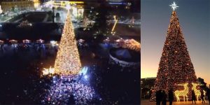 Më sipër, disa foto nga pema gjigande e vendosur në shesh. /albeu.com/