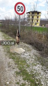 Jo vetëm kaq, por autori ka shkuar dhe më tej duke varur në një tabelë rrugore kafshën e gjorë që duket të jetë një vjedull, si për të demonstruar “trimërinë” e tij përpara kujtdo që përshkonte sot rrugën drejt Elbasanit. Ndërkohë që aty kalojnë edhe fëmijë të mitur që shikojnë skenën.