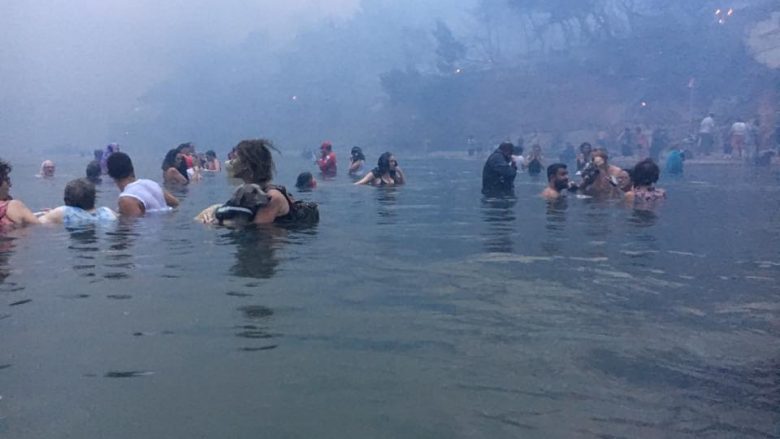 Në fotot dhe videon e publikuar shihen persona që tentojnë t’i shpëtojnë zjarrit vdekjeprurës në zonën e Matit në Athinë.