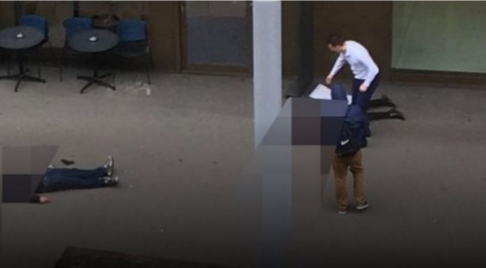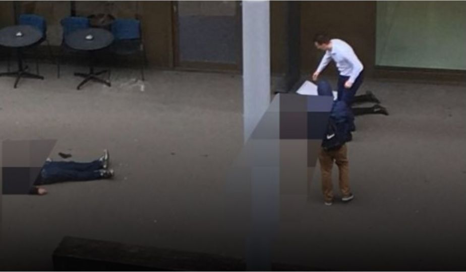 Siç shihet në foto, dy personat janë të shtrirë në tokë, ndërsa policia e Zyrihut tha se situata është nën kontroll dhe nuk ka rrezik për banorët.
