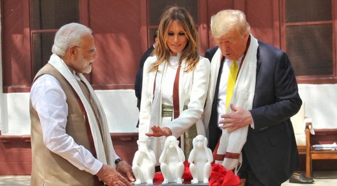 Gjatë vizitës në vendin ku ka jetuar Gandi, Modi u ka shpjeguar mysafirëve rëndësinë që ky vend e ka në luftën për liri, ku edhe shfrytëzoi rastin që Trumpit dhe Melania t’ju dhurojë figurat e tre majmunëve.