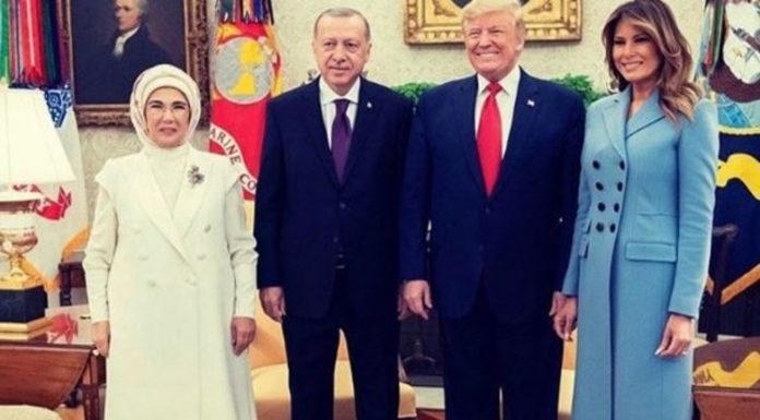 “E mrekullueshme të prisja sot në Shtëpinë e Bardhë Presidentin e Republikës së Turqisë dhe Zonjën Erdogan. U kënaqa që prita Zonjën Erdoan dhe që i tregova sallonet tona historike”,- shkruan Melania Trump në mesazhin që shoqëron fotografinë.