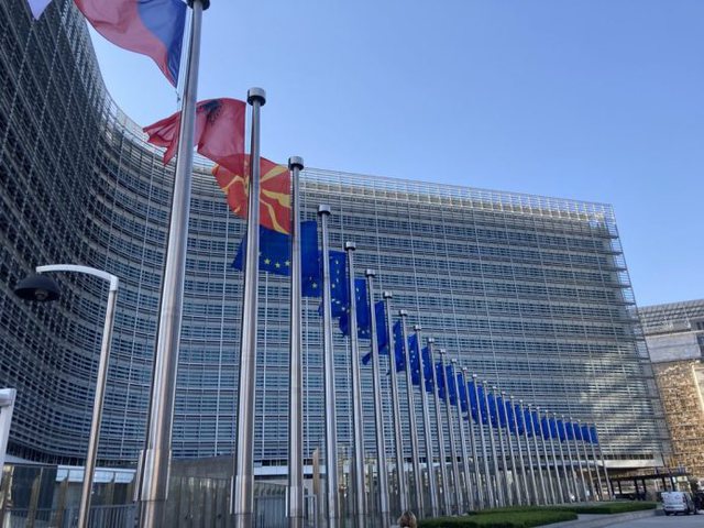 E teksa negociatat janë hapur tani më zyrtarisht flamuri i Shqipërisë dhe Maqedonisë së Veriut është vendosur në Bruksel, krah atij Europian dhe të Çekisë, e cila drejton Këshillin Europian.