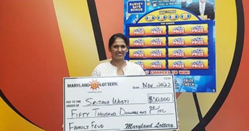 Srijana Wosti, 41 vjeç, nga Silver Spring, u tha zyrtarëve të Maryland Lottery se ajo bleu një biletë gërvishtëse prej 5 dollarësh Family Feud nga Kemp Mill Beer, Wine & Deli në qershor. Wosti u shpreh se fillimisht mendoi se bileta ishte një fituese prej 50 dollarësh, por më vonë e skanoi atë me telefonin e saj dhe zbuloi se vlente 50,000 dollarë.
