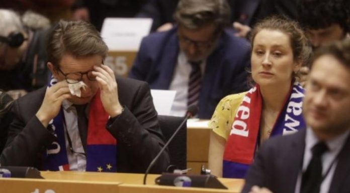 Parlamenti Evropian i dha miratimin përfundimtar largimit të Britanisë nga BE-ja, duke hapur kështu rrugën Brexit-it të premten, në 31 janar. 621 ligjvënës votuan pro shkëputjes së Britanisë, 49 ishin kundër dhe 13 të tjerë abstenuan. Emocionet përfshinë ligjvënësit në sallë pas votimit.