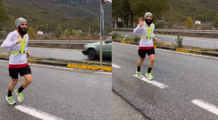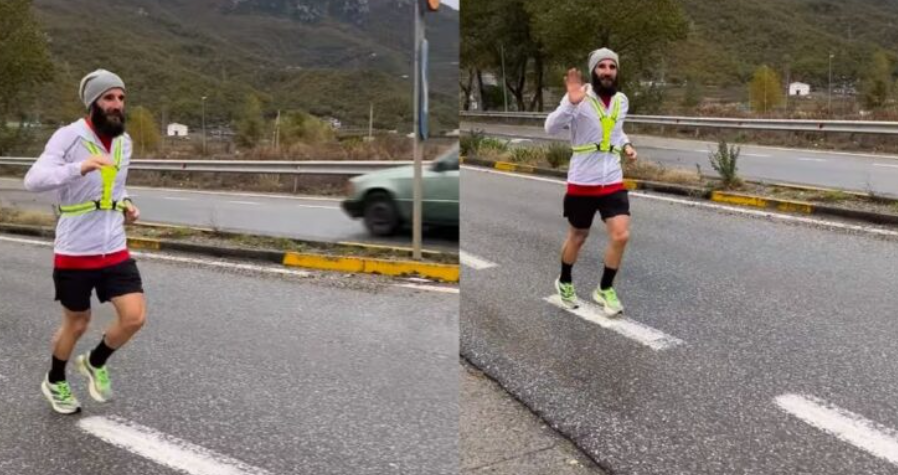 Ka arritur në 60 kilometrat e fundit Erzen Zyberaj atleti kosovar i cili është nisur dje nga Prishtina për në Tiranë duke vrapuar.