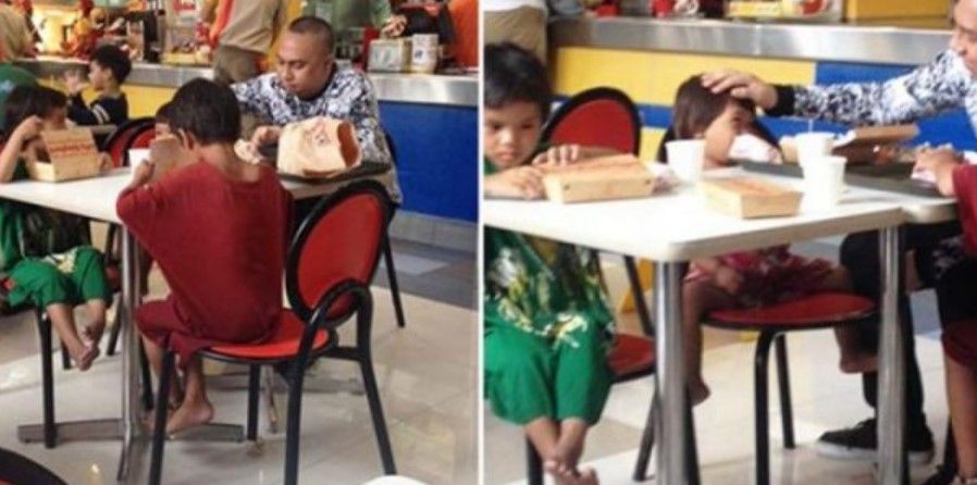 Një burrë kishte vendosur tu jepte të hanin një vakt 3 fëmijëve të zbathur në rrugë. Pasi porositi ushqimin, burri thirri fëmijët e rrugës dhe i uli të uleshin në tryezë brenda për të ngrënë së bashku.