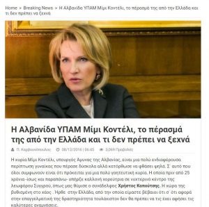 Sot, një media anonime greke, e quajtur militaire.gr ka botuar një shkrim qartësisht tendencioz ndaj Mimi Kodhelit duke aluduar për të shkuarën e saj.