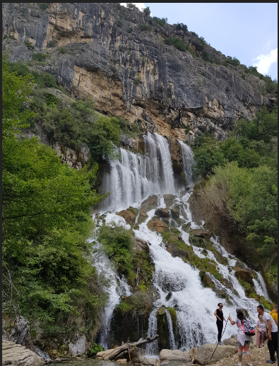 Nisim zbritjen drejt Ujëvarës. Janë disa shkallë të sajuara, ku është hequr dheu për të krijuar efektin e tillë, por sigurisht e kanë lehtësuar mjaft aksesin. Zbritja nuk zgjat aq shumë dhe kurora e pemëve ta bën pak të vështirë të shohësh të plotë Ujëvarën, por kur mbërrin në fund, e kupton që ia ka vlejtur lodhja. Është magjike! Uji është akull i ftohtë, del nga një e çarë gjatësore brenda shkëmbit dhe rrjedh furishëm poshtë në një lartësi që mesa kishim lexuar në internet, i kalon 100 metrat. Nuk krahasohet aspak me atë të Shëngjergjit, e cila sigurisht është interesante, por kjo ishte diçka tjetër. Të kujtonte pak edhe Valbonën, teksa shihje rrjedhën e ujit që merrte tatëpjetën nën një efekt blu. Dhe, vetvetiu mendon sa e pasur dhe sa e varfër është njëkohësisht Shqipëria.
