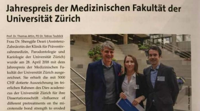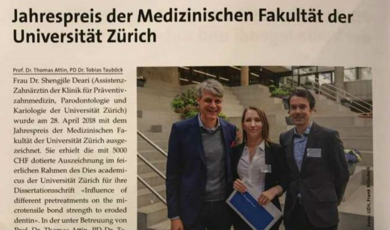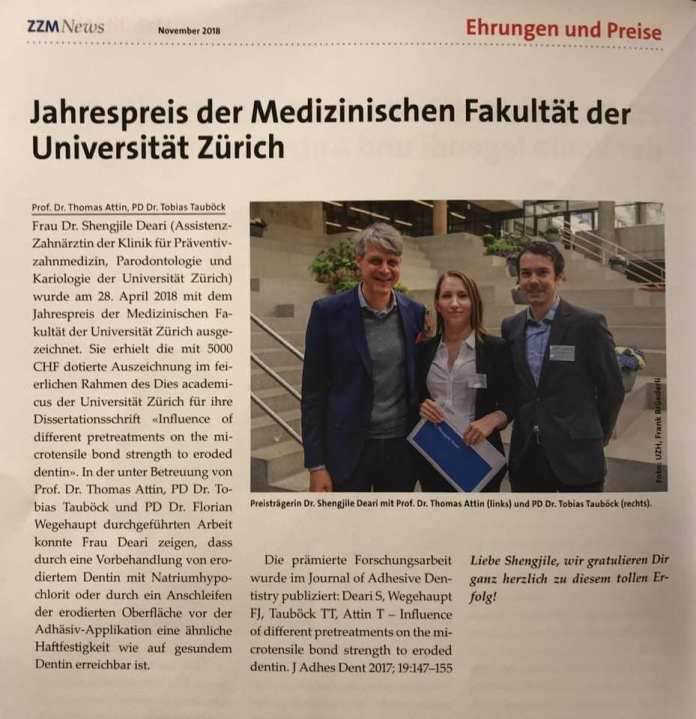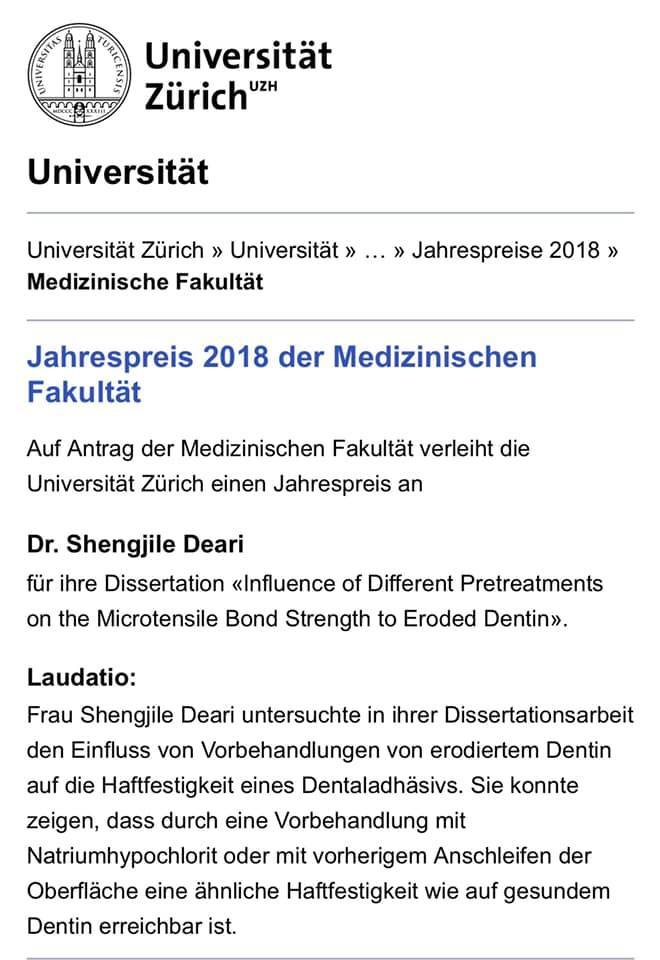 Dr. Shengjilja është mjeke asistente në Klinikën për Stomatologji Preventive në Universitetin e Zürichut dhe gjatë vitit të kaluar iu nda çmimi vjetor i Fakultetit të Mjekësisë.