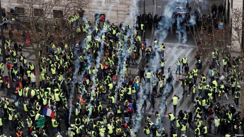 Policia është përleshur me grupin e protestuesve të njohur si “xhaketat e verdha”, në Paris të Francës, në protestën e re anti-qeveritare.
