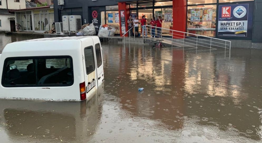 Pamje dramatike pas stuhisë së fortë të pasdites në Strumicë. Pjesa e ulët e qytetit pranë rrugës “Mladinska” si dhe rruga “Krushevska Republika” është nën ujë.