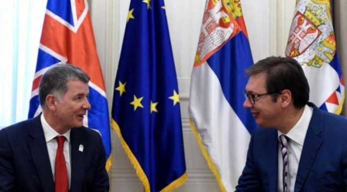 Presidenti i Serbisë, Aleksandar Vucic, e priti sot Richard Moore, Drejtorin e Përgjithshëm për çështje politike në Ministrinë e Jashtme të Britanisë së Madhe dhe ju falënderua për kërkesën e Britanisë për heqjen e taksës së Kosovës dhe i shpjegoi nismën e ‘mini-shengenit’. Moore i përshëndeti iniciativat e stabilizimit të marrëdhënieve në rajon, transmeton Gazeta Metro.