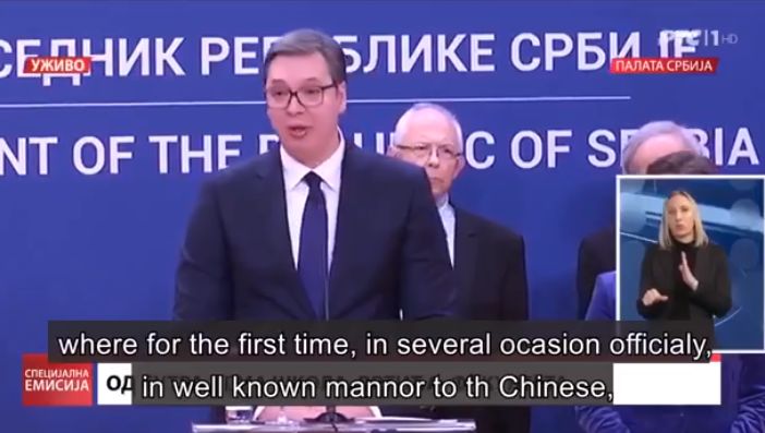 Vuçiq tha që për shkak se Serbia nuk ishte në gjendje të sillte pajisje mjekësore nga BE, vendi mund të kërkonte vetëm ndihmën e Kinës. Presidenti i kërkoi Kinës të dërgonte gjithçka, përfshirë edhe mjekë, sepse mjekët vendas tashmë janë të lodhur, tha ai.
