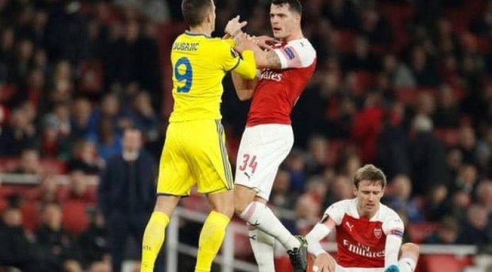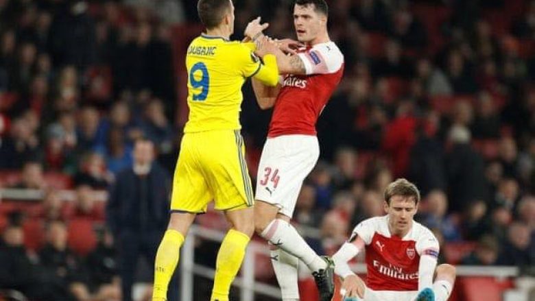 Granit Xhaka në fund të ndeshjes ka pasur problem me serbin e Bate Borisovit, Bojan Dubajic.