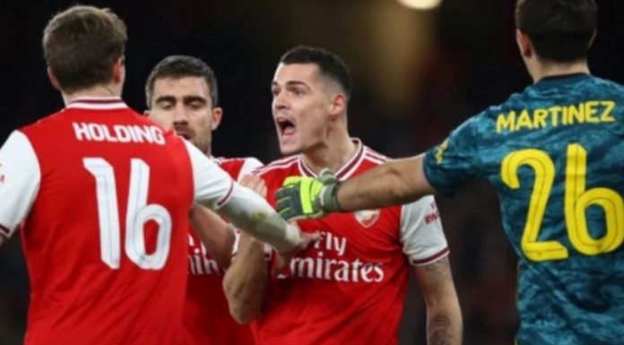 Granit Xhaka përsëri nuk i ka përmbajtur nervat. Mesfushori shqiptar këtë herë nuk acarohet me tifozët por me shokun e skuadrës te Arsenali, Rob Holding.