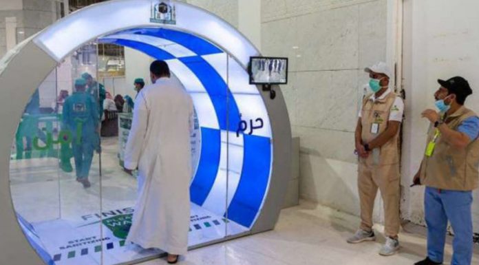 Xhamia e Shenjtë në Mekë ka instaluar së fundmi porta të sofistikuara për vetë-sterilizimin e besimtarëve si pjesë e masave paraprake kundër përhapjes së Koronavirusit të ri, ka raportuar agjencia Saudite e lajmeve SPA.