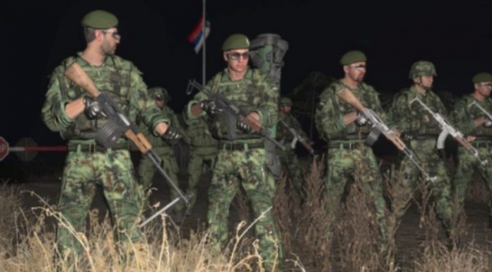 8 pjesëtarë të ushtrisë serbe të uniformuar, me helmetë dhe me armë të gjata janë parë në pjesën e Kamenicës që lidhet me Serbinë.