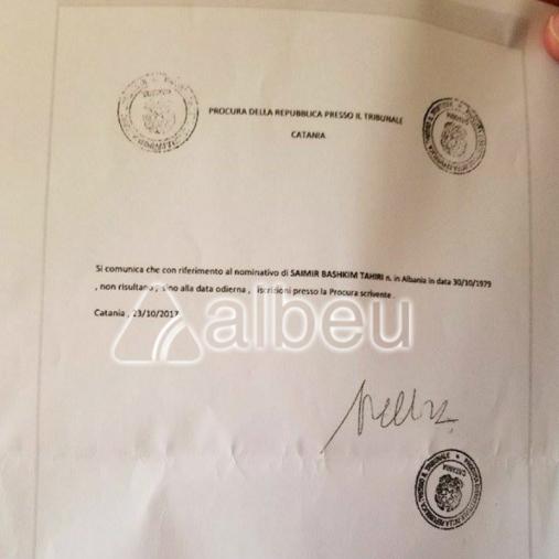 Në letrën e marrë nga Prokuroria e Katanias, Saimir Tahiri shprehet se nuk ka asnjë procedim penal të hapur ndaj tij.