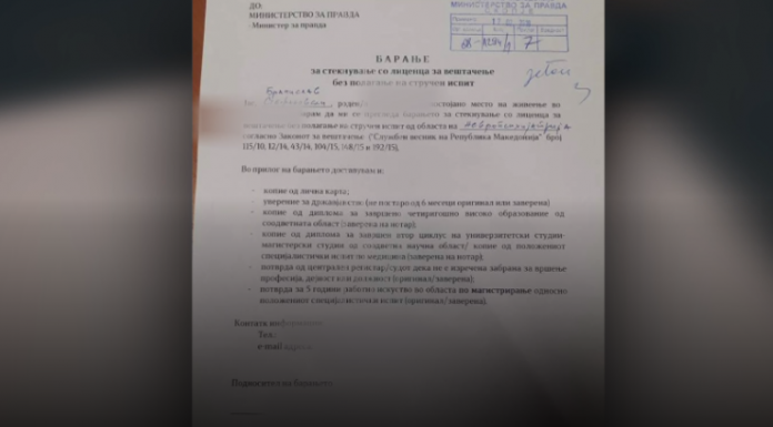 “Për marrjen e licencës për ekspertizë, ministri i Drejtësisë sjell vendimin që në bazë të nenit 26 të Ligjit për ekspertizë ligjore ekspertin ta shlyej nga regjistri i ekspertëve ligjor”.