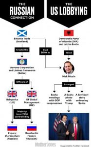 Sipas investigimit të bërë nga MotherJones, ka qenë Rusia e cila ka lobuar dhe financuar fotografinë e Bashës në Uashington duke futur në telashe lobistet e tij me drejtësinë amerikane.