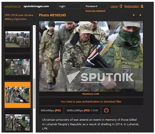 Sputnik raportoi se imazhi është bërë më 14 prill dhe tregon “të burgosurit ukrainas të luftës marrin pjesë në një ngjarje në kujtim të atyre që u vranë në Republikën Popullore të Luhansk si rezultat i granatimeve në 2014, në Luhansk, LPR”.