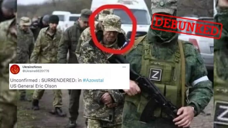 Llogaritë pro-ruse në Twitter dhe Facebook kanë pohuar se një admiral amerikan në pension me emrin Eric Olson u dorëzua me një grup ushtarësh ukrainas në fabrikën e çelikut Azovstal, një fabrikë ku ushtarët e fundit të mbetur në Mariupol u përballën me ushtrinë ruse.