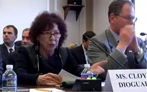 Ishte Shirley Cloyes DioGuardi, ekspertja e çështjeve ballkanike ajo që solli në sallë përpara kongresmenëve të pranishëm faktin se si shqiptarët në Maqedoni, ndonëse janë në numër të madh si komunitet, me rreth 30 deri në 40 për qind të popullatës së përgjithshme, ende nuk gëzojnë të drejta të plota, siç është ajo e përdorimit të gjuhës, apo trajtimit si qytetarë jo të dorës së dytë.